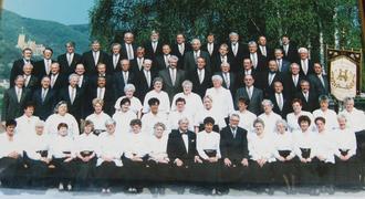 Männer- und Frauenchor im Jahr 1994 mit der Vereinsfahne von 1925