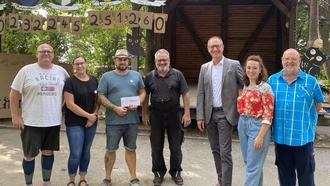 (v.l.) Die stellvertretenden „Lagerleiter“ und Scheunenbetreuer Timon Klaedtke und Kathrin Kurz, der Leiter des Scheunenkurses Tobias Kalb sowie die Vertreter der Lahnsteiner CDU Johannes Lauer, Günter Groß, Sabine Steffens und Heribert Seil. (Foto: CDU)
