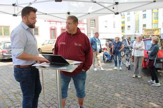 Dann steht Siefert mit seiner Ape im Schillerpark in Oberlahnstein, um die Anliegen der Bürgerinnen und Bürger zu besprechen.