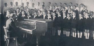 der Knabenchor der Volksschule Oberlahnstein mit Erich Backes um 1950 (Fotos: Sammlung Stadtarchiv Lahnstein)