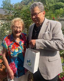 Im Namen von Lahnsteins Oberbürgermeister Lennart Siefert überbrachte der Beigeordnete Manfred Radermacher die Glück- und Segenswünsche der Stadt Lahnstein sowie des Landrats und überreichte der Jubilarin ein kleines Präsent. Er wünschte Ellen Pirch alles Gute und dass sie weiterhin so aktiv am Leben in ihrer Heimatstadt Lahnstein teilnehmen möge.