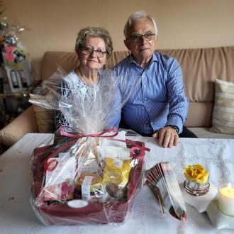 Ulrike und Rheinhard Fischer feierten am Mittwoch, 30. August 2023 ihre Goldene Hochzeit. Zu 50 gemeinsamen Ehejahren gratulierte ihnen Lahnsteins Bürgermeister Adalbert Dornbusch persönlich und übereichte dem Ehepaar im Namen der Stadt Lahnstein einen Präsentkorb mit fair gehandelten Produkten aus dem Eine-Welt-Laden.
