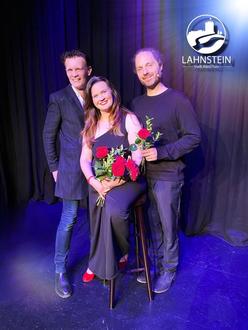 Mit dem Konzert „La Vie“ eröffneten Sängerin Silva Heil (Mitte) und Pianist Uli Cleves (rechts) die Spielzeit 2025/2026 am Theater Lahnstein – die erste unter dem neuen künstlerischen Leiter des Hauses Joerg Altenrath (links). (Foto: Stadtverwaltung Lahnstein)