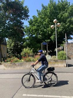 OB Lennart Siefert nutzt eines der Dienstfahrräder der Stadtverwaltung. (Foto: Mira Bind / Stadtverwaltung Lahnstein)