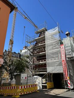 Die Baufortschritte am Alten Rathaus werden bei der Einwohnerversammlung 2023 erläutert.