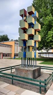 Seit 50 Jahren prägt ein außergewöhnliches Kunstwerk den Schulhof des Lahnsteiner Johannes-Gymnasiums: der Würfelturm von Pater Urban Koch. Die sechs Meter hohe Stele erhebt sich auf einem Betonsockel und besteht aus 30 gleich großen Würfeln, die in neun Stockwerken an zwölf Vierkantrohren befestigt sind. Auffällig sind die balkonartig hervortretenden Würfel im sechsten Geschoss sowie die das zweite und achte mit jeweils nur einem Würfel in der mittleren Senkrechten, die als Seele bezeichnet wird.