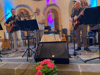 Bei dem 2. Teil des Konzerts kam der Lahnsteiner Gitarrist Rudi Keßler mit auf die Bühne. Mit dem Lied „Nessaja“ von Peter Maffay aus dem Konzertalbum „Tabaluga“ beeindruckte der dreistimmige Gesang die Zuhörer. Weiter ging es mit dem Song „Hallelujah“ aus dem Jahr 1954 und dann wieder ein Stück von Eric Clapton aus dem Jahr 1977 „Lay down Sally“. Hier kam die Soloeinlage von Rudi Keßler mit spitzfindigen und kniffligen Fingerläufen auf der Gitarre zur Geltung. Mit den Stücken „I want to break free“, Regenbogenfarben“ von Bonnie und Clyde sowie „Hinter dem Horizont“ wurde der 2. Teil beendet.