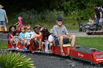 Am Samstag fand der Fahrtag, zu dem der Runde Tisch für Flüchtlinge in Kooperation mit den Ehrenamtlichen der Gartenbahn Rhein-Lahn eingeladen hatte, statt. Bei dem Spätsommertag ging es fast wie auf einem richtigen Bahnhof zu. Gut gefüllter Bahnsteig, besetzte Bänke und Gedränge beim Ein- und Aussteigen am Bahnhof Lahnstein Victoriabrunnen. Und dann begann die Fahrt über das Gelände. Die Besucher konnten auf der Fahrt eine Brücke überqueren, das Modell des Lahnsteiner Wasserturms und das Modell der Marksburg erspähen. Vorbei an einem sehr schön angelegten „Weinberg“ kam dann noch das Modell eines Stellwerks in Sicht. Die Kinder, die zahlreich mit ihren Eltern begrüßt werden konnten, hatten ihren Spaß und auch Erwachsene konnten sich auf eine Rundfahrt begeben.