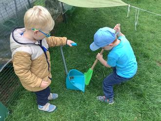 Die Kinder helfen fleißig mit und übernehmen kleine Aufgaben, wie das Füttern, Wassergeben und Saubermachen des Stalls und des Außengeheges. Zwischendurch werden die Hühner gestreichelt und mit Leckereien verwöhnt.
