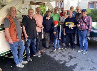 Überraschend viele Mitglieder sowie Freundinnen und Freunde halfen mit, bei der Kirmes mit Kolping im Schatten des Kirchturms der St. Martinskirche. Das Foto zeigt die Helfercrew beim Aufbau am Freitag vor dem Fest.