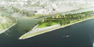 „Das Büro Geskes.Hack überzeugte mit einem klaren, dem Ort angemessenen Konzept“, erläuterte Fachpreisrichterin Prof. Ulrike Kirchner die Entscheidung des Preisgerichts. „Sie bieten viele neue Aspekte, die wir als sehr gute Impulse bewerten.“ Diese Pläne sehen eine ausgewogene Modernisierung der Grünanlagen an den Flüssen vor und gestalten die Hafenmole mit dem Hafenbecken, das „Hafenköpfchen“, als neuen Freizeitbereich. Der Park rund um das Martinsschloss bildet nach Geskes und Hack als mediterraner Garten mit Bühne ein besonderes Highlight im Süden des Planungsbereichs. Durch den Rückbau befestigter Flächen entsteht eine zusammenhängende Parkanlage bis zum Restaurant Rheinkrone, bei der viele Bäume vor der Sonne schützen. Im Übergang vom Schloss zu den Oberlahnsteiner Rheinanlagen könnte ein Wasserspielplatz entstehen, im Hanggarten am Hafenköpfchen sind Sitzstufen mit Blick auf den Hafen geplant. Über einen barrierefreien Weg gelangt man zum Wasser sowie zur Rheinkrone.