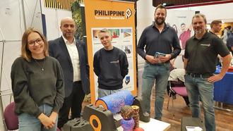 Am Stand der Philippine Lahnstein sprachen Oberbürgermeister Lennart Siefert (2. v. r.) und Agenturchef Elmar Wagner (2. V. links) auch mit der angehenden Werkzeugmechanikerin Cheyenne Caspar (Mitte). (Foto: Jutta Klöckner / Agentur für Arbeit)
