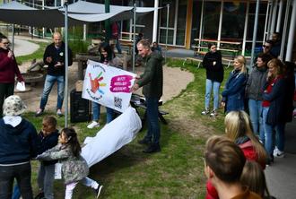 Bevor die Familien an die verschiedenen Spiel-Stationen entlassen wurden, welche auf dem Außengelände aufgebaut waren begrüßte auch der Förderverein, welcher sich 2022 gegründet hat, alle Besucher.