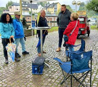 In Niederlahnstein fand die jüngste Einwohnersprechstunde „Lennart Live“ mit Oberbürgermeister Lennart Siefert statt. Zahlreiche Bürgerinnen und Bürger trotzten dem Regen und nutzten die Gelegenheit, ihre Fragen, Wünsche und Sorgen direkt an den Oberbürgermeister zu richten. „Die Einwohnersprechstunden sind ein wichtiger Gradmesser dafür, wo vor Ort Handlungsbedarf gesehen wird“, so Siefert, der sich besonders freute, dass die Besucherinnen und Besucher auch untereinander ins Gespräch kamen.