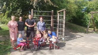 Simone Dietzler vergewisserte sich bei ihrem Besuch im Kindergarten, dass für die von ihr und den REWE-Kunden bereitgestellten Spendengelder tolle, nachhaltige und hochwertige Rädchen der Firma Winther angeschafft wurden.