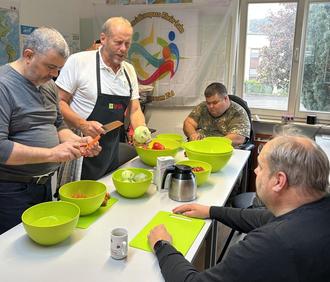 Nach einem Lebensmittelbingo und einer kleinen Fragerunde, was verschiedene Siegel bedeuten, wie man selbst Lebensmittelverschwendung und Einwegverpackungen vermeiden kann und was es mit dem Mindesthaltbarkeitsdatum auf sich hat, startete der interaktive Kochworkshop, bei dem die Teilnehmer gemeinsam mit dem Kochbusteam frische, regionale Lebensmittel zubereiteten. Anschließend wurde das selbst gekochte Essen in geselliger Runde gemeinsam genossen. Mit dabei war auch Lahnsteins Oberbürgermeister Lennart Siefert, der auch selbst freudig den Kochlöffel schwang.