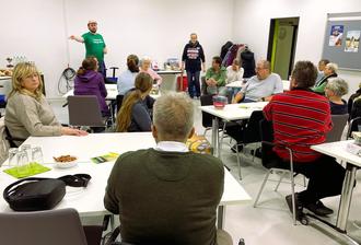 Mario Stein von Spieß Stein Papier und Heike Handlos (vorne Mitte) aus der Stadtbücherei begrüßten die Besucher zum Spieleabend.