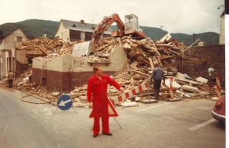 1982 rollten die Bagger an: Das Hotel mit seinen Anbauten wurde für eine Freifläche und Parkplätze abgerissen. Die Fotos zeigen die Häusergruppe vor und während des Abrisses.