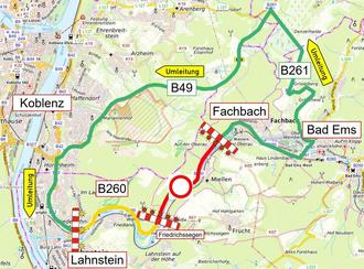 Der Landesbetrieb Mobilität Diez teilt mit, dass die Bauarbeiten zur Sanierung der Bundesstraße B260 zwischen der Brücke Friedrichssegen und Fachbach Oberau ab 05. November beginnen werden.