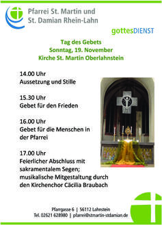 | OL St. Martin | 14.00 Uhr bis 15.00 Uhr | Aussetzung und Stille |