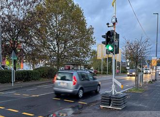 Im Notfall schalten sich die Ampel in der Johannesstraße und die Fußgängerampel in der Brückenstraße auf Rot. (Foto: Mira Bind / Stadtverwaltung Lahnstein)