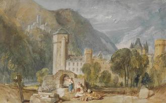 Der britische Maler Joseph Mallord William Turner gilt als einer der Väter der Rheinromantik. Er war fasziniert von der Erhabenheit der Natur, den Ruinen und den weinbewachsenen Hängen des Rheins. Turners genaue Beobachtungsgabe und sein ungeheures Gespür für Dynamik und Lichtspiele hinterließen zahlreiche Aquarelle basierend auf den unzähligen Skizzen seiner ersten Rheinreise 1817.