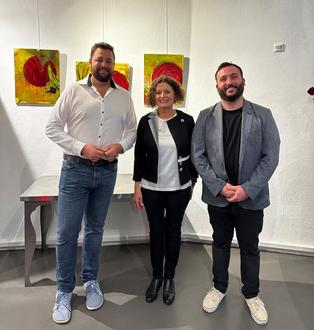 Oberbürgermeister Lennart Siefert, Künstlerin Stephanie Brühl und Hannes Mager von der Stadtverwaltung Lahnstein bei der Vernissage „Der erweiterte Raum“. (Foto: Stadtverwaltung Lahnstein)