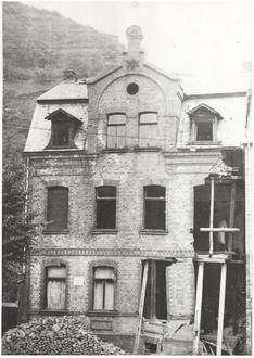 Schwerbeschädigtes Haus in der Ostallee nach dem 11. November 1944 (Foto: Sammlung Stadtarchiv Lahnstein)