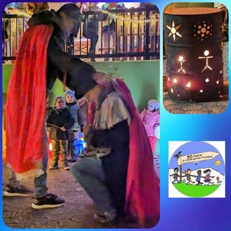 Am 10.11.2023 richtete der evangelische Kindergarten Friedland nach drei Jahren wieder ein Laternenfest für die ganze Gemeinde und interessierte Familien aus den anderen Stadtteilen aus. Das Fest startete mit einer kleinen Andacht im Gemeindehaus. Pfarrerin Fischer erzählte mit einer Bildergeschichte über das Leben des römischen Soldaten Martin, der seinen warmen Mantel mit dem armen Bettler teilte und warum man zum Gedenken mit Laternen ein Licht ins Dunkle trägt. Anschließend traf man sich oberhalb des Gemeindehauses zu einem kleinen Umzug, der von Feuerwehrmännern der Wache Nord mit Fackeln begleitet wurde. Nicht nur die vielen, bunten Laternen strahlten um die Wette. Auch die bunt geschmückten Vorgärten und leuchtenden Fenster sorgten für ein Strahlen in den Augen der Kinder. Hier geht der Dank an die vielen Anwohner entlang der Zugstrecke, die dem Aufruf und der Bitte des Kindergartens gefolgt sind.