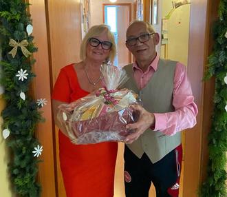 Zu ihrem besonderen Fest überbrachte der Beigeordnete der Stadt Lahnstein, Manfred Radermacher, dem Ehepaar die herzlichen Glückwünsche von Oberbürgermeister Lennart Siefert und Landrat Jörg Denninghoff und überreichte seitens der Stadt einen Präsentkorb mit Produkten aus dem Lahnsteiner Eine-Welt-Laden. Radermacher wünschte den Beiden auch persönlich viele weitere schöne gemeinsame Jahre in Gesundheit.