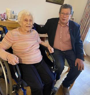 Lahnsteins Beigeordneter Manfred Radermacher überbrachte Gertrud Dillenberger zu ihrem 97. Geburtstag herzliche Glückwünsche. (Foto: Stadtverwaltung Lahnstein)