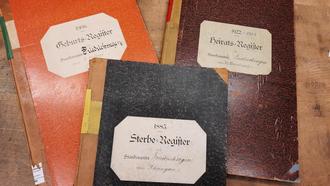 Titelseiten der jährlich geführten Personenstandsbücher