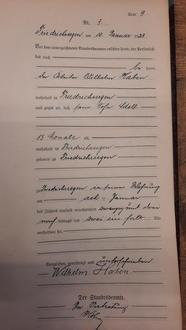 Beispiel einer Friedrichssegener Sterberukunde – hier für Adolf Haben aus dem Jahr 1923 (beides Sammlung Stadtarchiv Lahnstein)