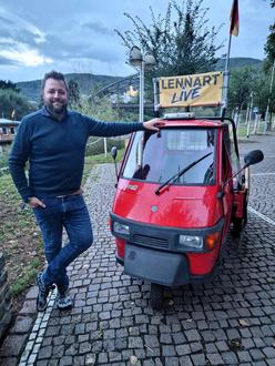 Am 12. September steht Oberbürgermeister Lennart Siefert mit seiner Ape in Niederlahnstein. Wer ein Anliegen hat, kann einfach vorbeikommen. (Foto: Eva Dreiser / Stadtverwaltung Lahnstein)