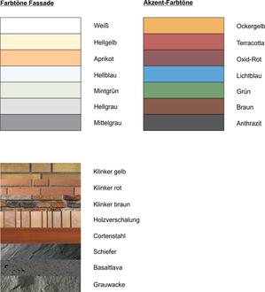 (1) Fassadenfarben müssen sich im Hinblick auf ihre Helligkeitsstufe in das Farbspektrum der umgebenden Nachbarbebauung einfügen.