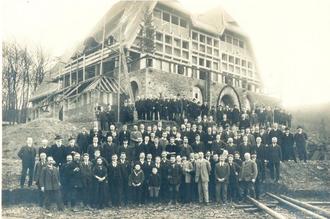 Richtfest Dezember 1922 mit allen am Bau Beteiligten. (Fotos: Sammlung Stadtarchiv Lahnstein)