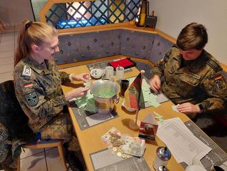 HF Ellen Müller und SU Nicole Kretschmer ziehen im Casino der Falckenstein-Kaserne die ersten Lose.