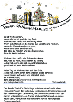 Die ehrenamtlichen Sprachkurse werden dann nach den Weihnachtsferien fortgeführt. Die Fahrradwerkstatt hat auch im nächsten Jahr wieder nach einem Öffnungszeitenplan geöffnet. Dieser Plan befindet sich als Plakat auf den ersten Seiten dieser Ausgabe.