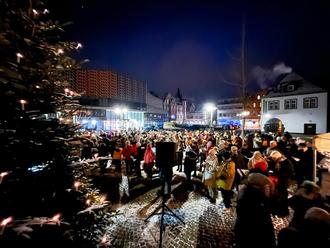 Die Stadtverwaltung hatte auf den Salhofplatz eingeladen, um den Zauber des Advents beim gemeinsamen Singen zu erleben. Der Männerchor Lahnstein stimmte, begleitet von Karl Krämer auf dem Akkordeon, Weihnachtsklassiker an und die über 200 singbegeisterten Gäste stimmen mit ein.