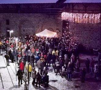 Vor der schneebedeckten Kulisse der Stadtmauer fand am Freitag, 16. Dezember das erste gemeinsame Adventssingen in Lahnstein statt.