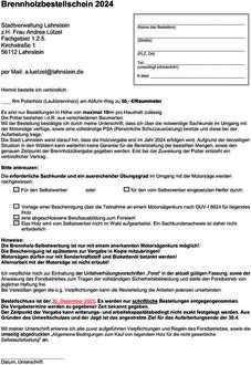 Mit meiner umseitigen Unterschrift bestätige ich, dass ich über die Unfallgefahren bei der Selbstaufarbeitung unterwiesen worden bin und die allgemeinen Bedingungen zum Kauf von liegendem Holz für die nicht gewerbliche Selbstaufarbeitung sowie die Bedingungen für die nicht gewerbliche Aufarbeitung von liegendem Holz durch Selbstwerber anerkenne und beachte. Ich bin damit einverstanden, dass meine Daten über den einzelnen Vertrag hinaus gespeichert werden.