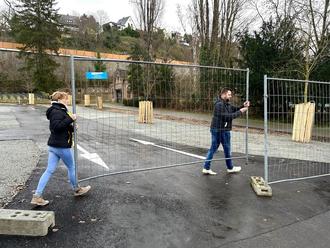 Eine Beleuchtung ist im unteren Teil des Parkplatzes vorgesehen. Die Ausleger für diese werden jedoch erst in der dritten Kalenderwoche des neuen Jahres geliefert, sodass die vollständige Beleuchtung voraussichtlich Mitte bis Ende Januar abgeschlossen sein wird.