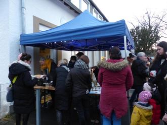 Das 15. Fenster schmückten und verzierten die Kinder der Kita Rambazamba selbst und die Kita lud zur Enthüllung alle Rambazamba-Familien und die Bewohner der C-S-Schmidt-Straße zu einem Adventsfest ein. Alle Gäste wurden zunächst am Eingang von den Erzieherinnen mit einem kleinen Gastgeschenk begrüßt und mit Glühwein, Punsch, Würstchen und Waffeln verköstigt.