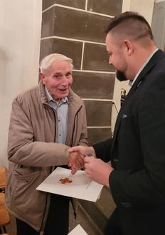 Rudolf Kring (87) ist Kaufmann und Verleger. Ob Lahnstein-Kalender oder zahlreiche Bücher, davon allein fünf gemeinsam mit dem Stadtarchiv Lahnstein herausgegebene Bildbände – sie alle wurden über ihn gedruckt. „In allem steckt unglaublich viel Initiative, Wissen und Herzblut von ihm. Auch der heute vorgestellte Band trägt seine Handschrift“, so Oberbürgermeister Siefert während seiner Ansprache. Krings Engagement für die Lahnsteiner Geschichte erstreckt sich noch weiter: So trat auch er schon oft als Zeitzeuge bei Ausstellungen des Stadtarchivs auf und berichtete eindrücklich über den Angriff am 11. November 1944, den er als Sechsjähriger erleben musste.