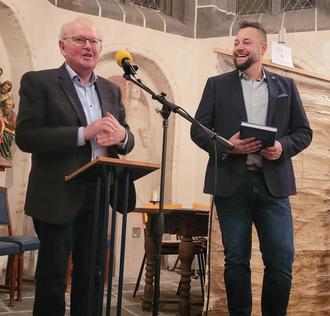 LAV-Vorsitzender und Co-Autor Dr. Hubertus Seibert überreicht OB Siefert das erste Exemplar. (Foto: Wolfram Post)