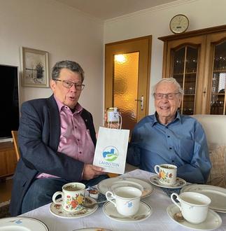 Am 14. Dezember 2025 feierte Horst Werner in Lahnstein seinen 96. Geburtstag. Aus diesem Anlass überbrachte der Beigeordnete der Stadt Lahnstein Manfred Radermacher auch im Namen der Stadtverwaltung die herzlichsten Glückwünsche. Neben den schriftlichen Grüßen von Oberbürgermeister Lennart Siefert erhielt er ein kleines Präsent mit ausgewählten Artikeln aus dem Lahnsteiner Weltladen.