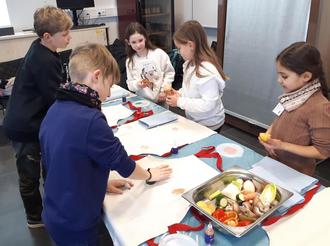 Rund 22.000 Essen liefert die Firma Sander täglich allein an Schulen im ganzen Bundesgebiet aus. Von diesen Dimensionen waren die Kinder sichtlich beeindruckt. Im Anschluss an die Führung waren alle dann noch einmal kreativ gefordert. In einem kindgerechten Workshop konnte sich jeder mit Gemüsestempeln eine eigene Schürze bedrucken, die später als kleine Erinnerung mit nach Hause genommen werden durfte. Bevor es aber wieder auf den Heimweg ging, gab es selbstverständlich noch ein leckeres Mittagessen für alle in der werkseigenen Kantine.