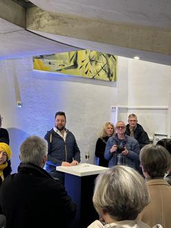 OB Siefert begrüßt Kunstinteressierte zur Vernissage im Theater Lahnstein. (Foto: Hannes Mager / Stadtverwaltung Lahnstein)