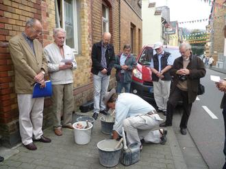 Verlegung der Stolpersteine in der Johannesstraße im Jahr 2013 mit dem Künstler Gunter Demnig (Foto: Christian Müller / Kolpingfamilie)