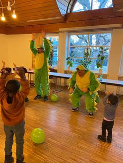 Der Niederlahnsteiner Carneval Verein hatte die Dinos geschickt und es wurde ausgiebig mit den Kindern und auch den Erwachsenen getanzt, gespielt und gebastelt bei zünftiger Karnevalsmusik.